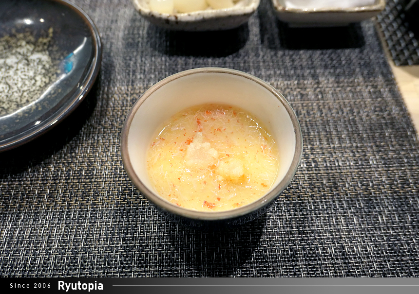 1. 시작 : 게살과 새우튀김을 넣은 계란찜(차완무시)
