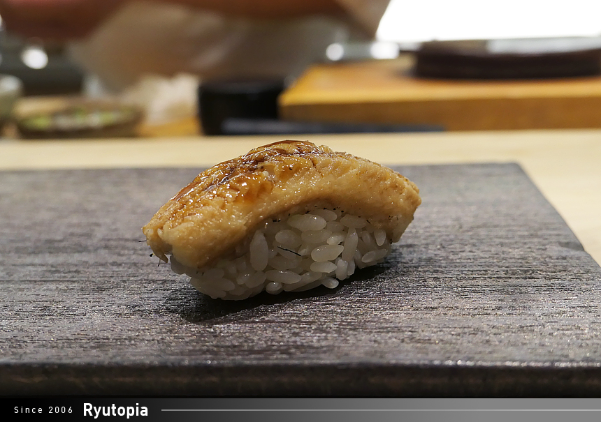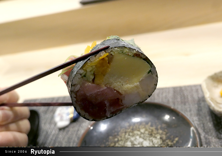 타마고야키(たまごやき)라고도 불리는 구운 계란으로 초밥 코스의 마무리를 장식.