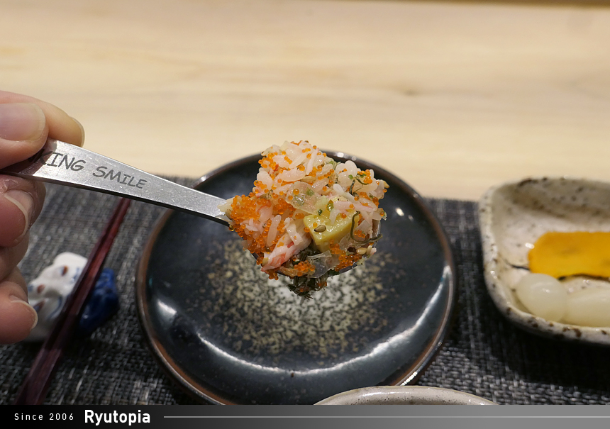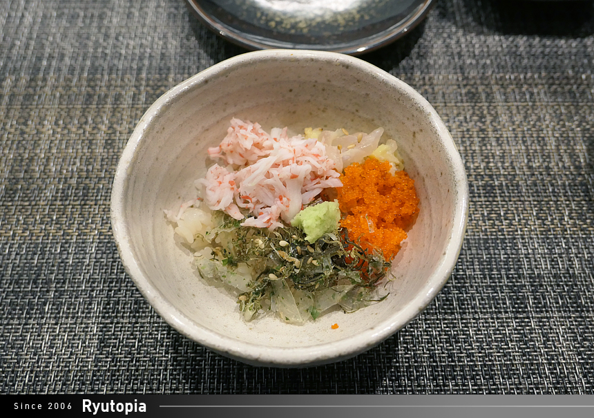 게살, 날치알, 도로로곤부(とろろ昆布 - 말린 다시마를 실처럼 가늘게 깎은 것)