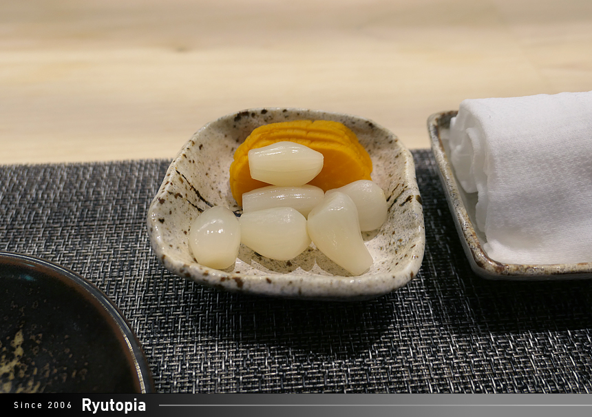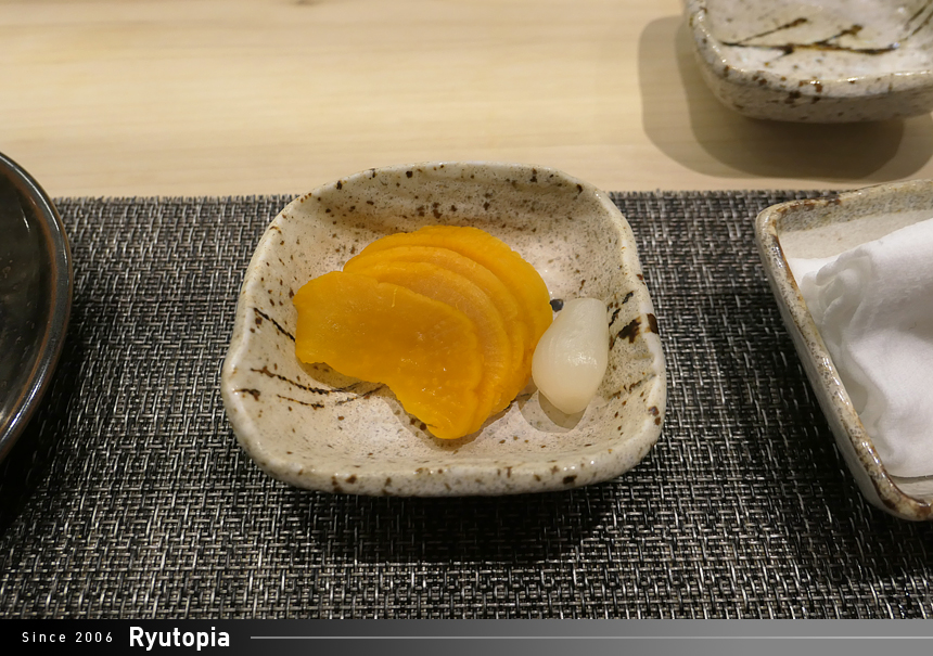 절임야채로는 초생강, 락교, 단무지 세 가지가 제공되는군요.
