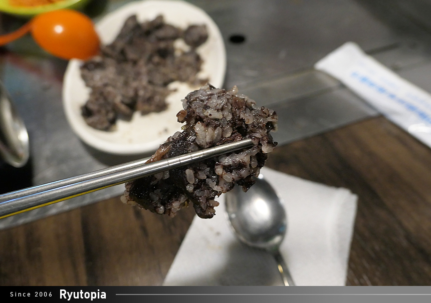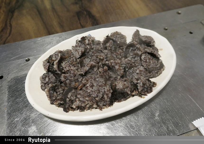 당면순대와 피순대를 반쯤 섞은 것 같은데, 많이 으깨진 상태로 제공되는 게 특징.