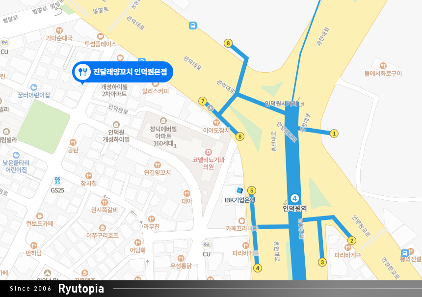 ※ 진달래양꼬치 찾아가는 길 : 수도권 전철 4호선 인덕원역 7번출구 하차 후 직진, 투썸플레이스 골목에서 좌회전