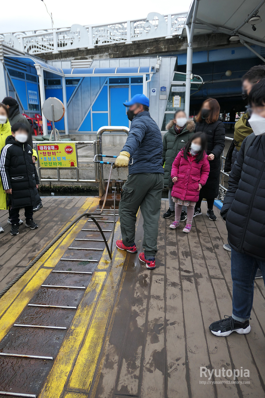 사진을 보면 알 수 있듯이 육지 쪽 선착장과 아바이마을 쪽 선착장의 폭은 정말 좁습니다 ^^;;