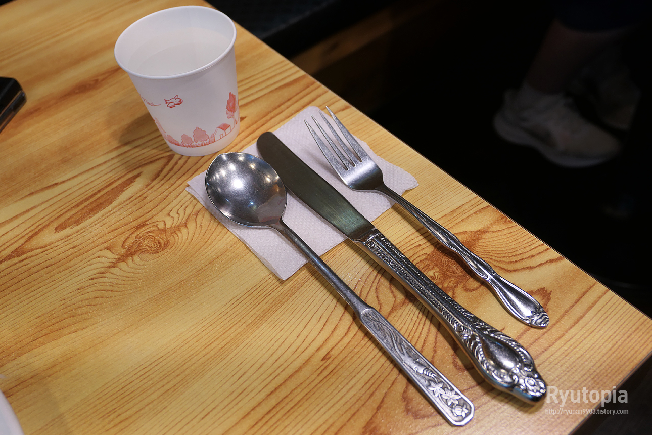 메뉴는 심플하게 단 두 가지 메뉴만 취급! 거기에 음료 추가 정도의 사이드만 있었습니다.