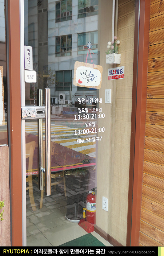영업 시간은 출입문 앞에 붙어있습니다. 매주 수요일은 쉬는 날이니 참고하시기 바랍니다.
