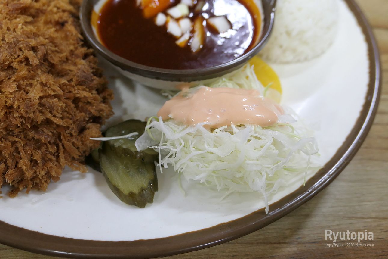 돈까스가 원래 바삭하게 튀긴 음식이라지만, 이 집은 유독 다른 돈까스집보다 더 바삭한 게 특징.