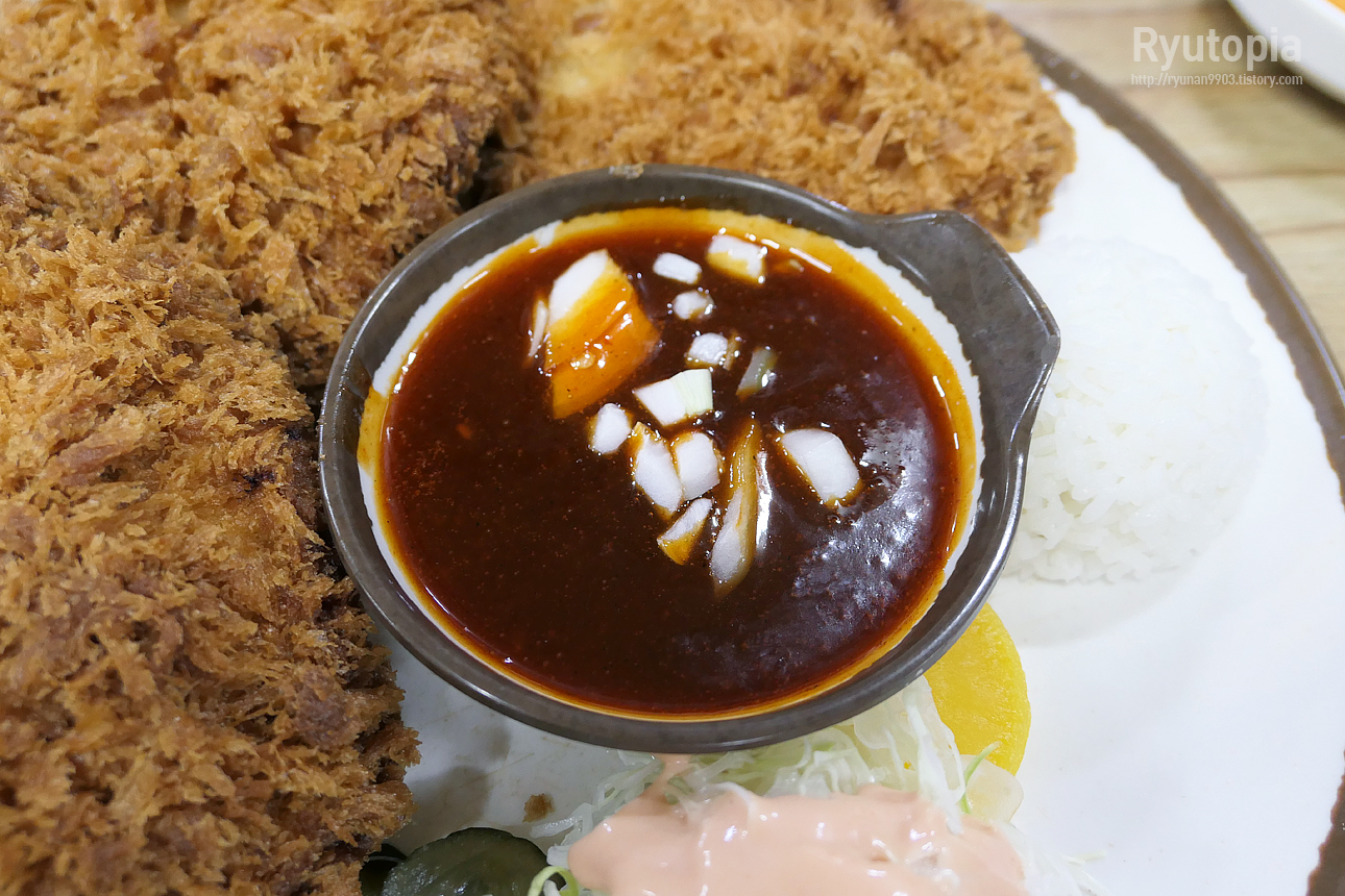 일반 돈까스와 달리 양념돈까스는 소스를 튀김 위에 뿌려주는 게 아닌 따로 담겨나오는 찍먹으로 제공.