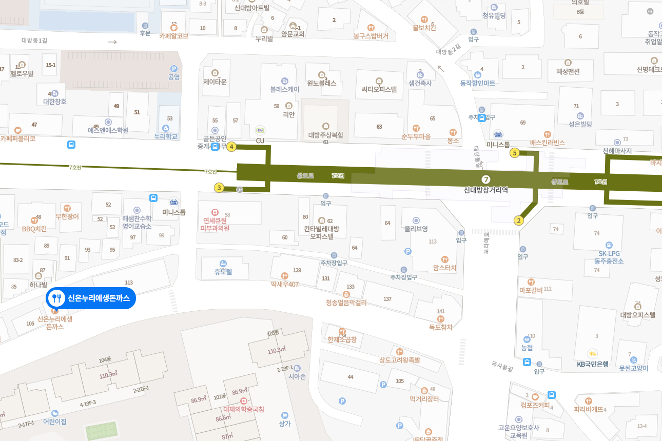 ※ 신 온누리에 생돈까스 찾아가는 길 : 지하철 7호선 신대방삼거리역 3번출구 하차, 미니스톱 골목 끼고 좌회전