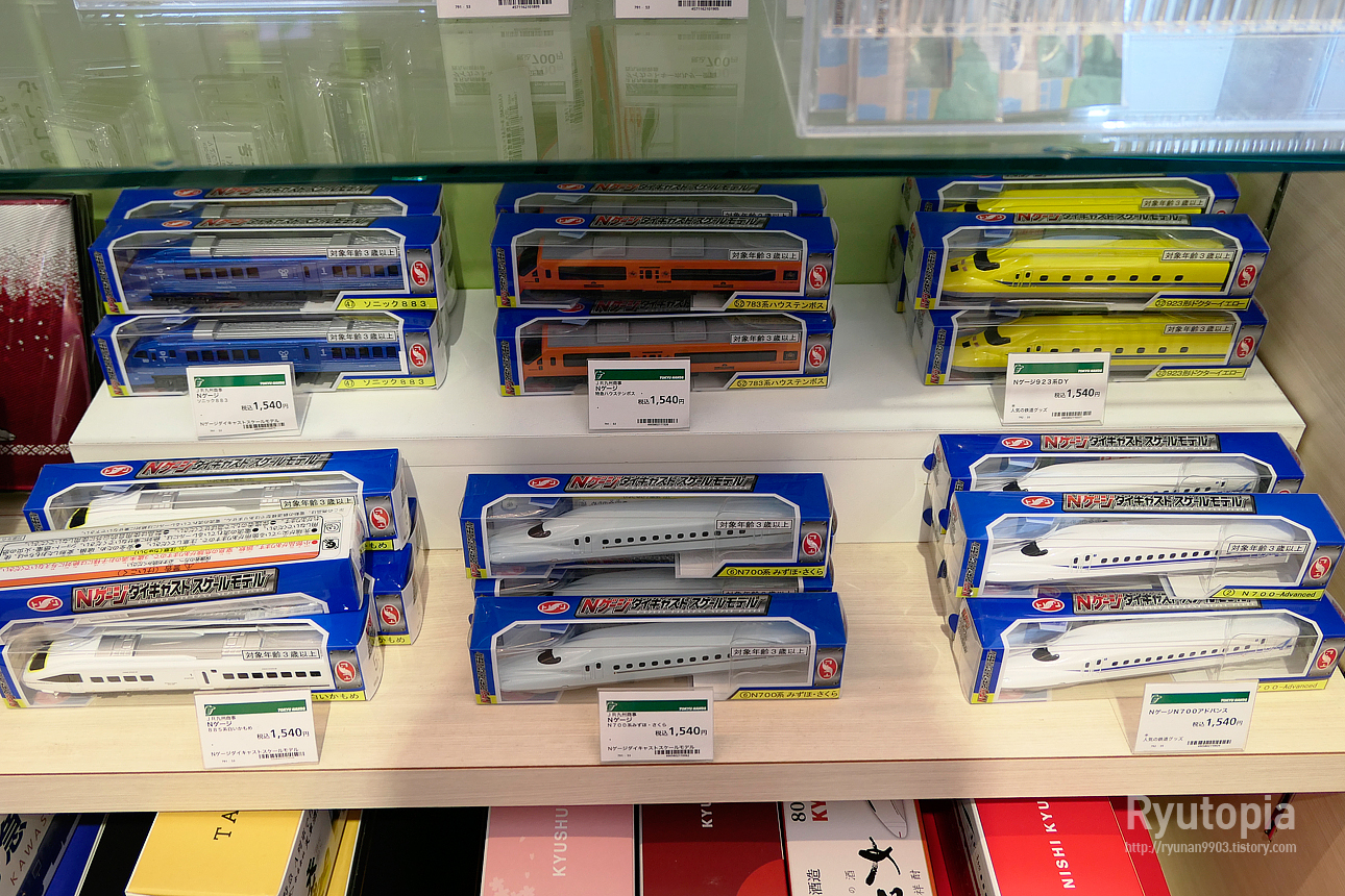JR 큐슈 쪽 신칸센, 특급열차 모형들. 가격은 전부 1,540엔으로 동일.